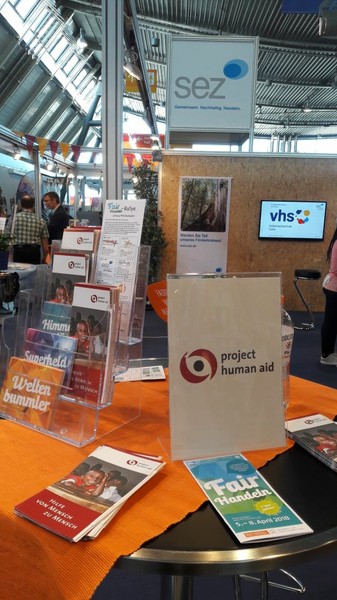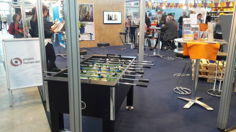 rolandkickerstandDie Fair Handeln in Stuttgart ist Deutschlands älteste und bedeutendste Messe für Fair Trade und global verantwortungsvolles Handeln mit rund 180 internationalen Ausstellern. Die Stiftung Entwicklungszusammenarbeit Baden-Württemberg (SEZ), die bereits einige unserer Projekte gefördert hat, hatte Project Human Aid eingeladen, unsere Arbeit auf der Messe zu präsentieren. Unser Mitglied Roland Mayer-Frei war am Samstag, der traditionell besonders besucherstark ist, von 10 bis 18 Uhr vor Ort und konnte zahlreiche Besucher ansprechen. Dabei war ein am SEZ-Stand aufgestellter Tischkicker ein guter Anknüpfungspunkt, um Aufmerksamkeit zu erzeugen. Die Gelegenheit wurde auch genutzt, um sich mit anderen Ausstellern auszutauschen, die sich in Burundi engagieren.