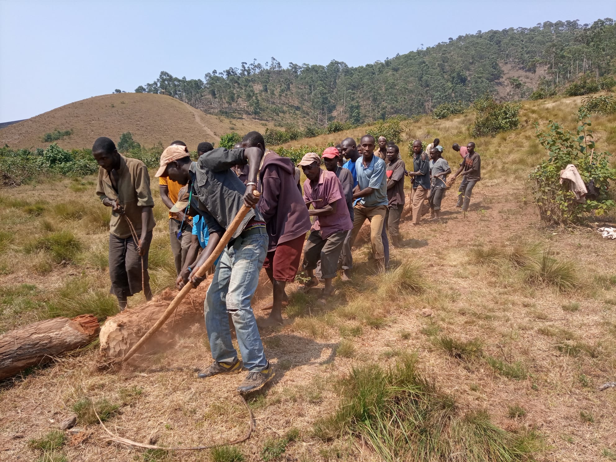 Die neue Straße nach Kivubo soll natürlich auch für Fahrzeuge passierbar sein. Die Brücken über die kleinen Wasserläufe entlang der Strecke müssen deshalb hohen Gewichten standhalten können. Die schweren Baumstämme, die wir dafür verwenden, müssen die Arbeiter manchmal mit reiner Muskelkraft an ihren Bestimmungsort bringen. Das Projekt wird aus Mitteln des Landes Baden-Württemberg über die Stiftung Entwicklungs-Zusammenarbeit Baden-Württemberg (SEZ) gefördert.